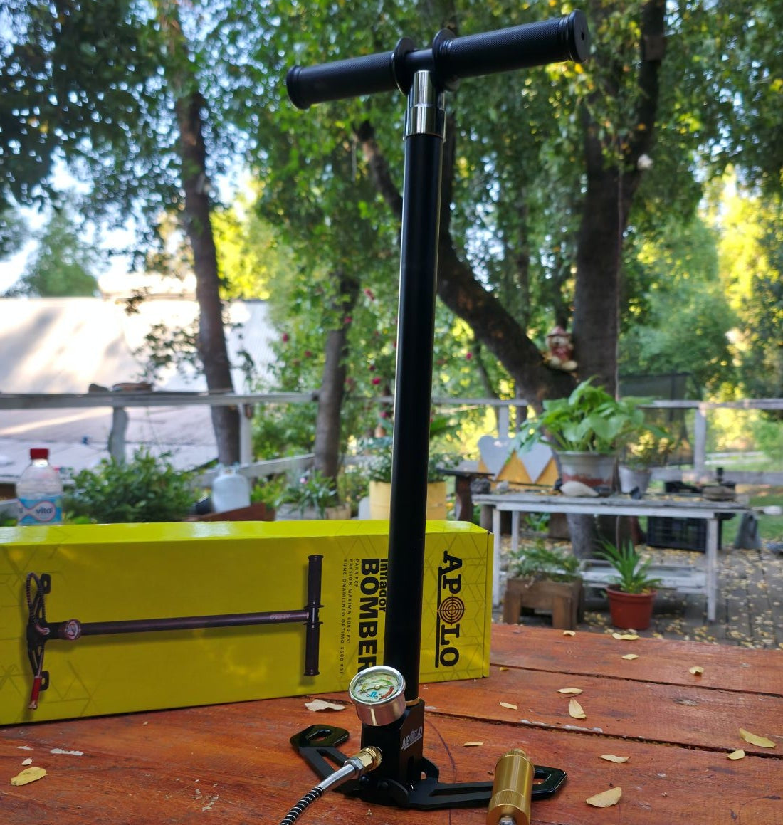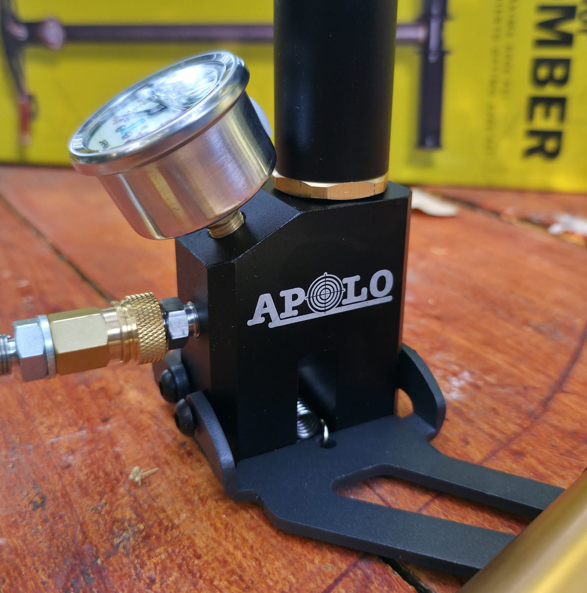 Su diseño ergonómico con mangos de goma antideslizantes, patas plegables y conector rápido Foster de bronce, hacen del Bomber Four una herramienta confiable, cómoda y compatible con cualquier marca de rifle o pistola PCP.