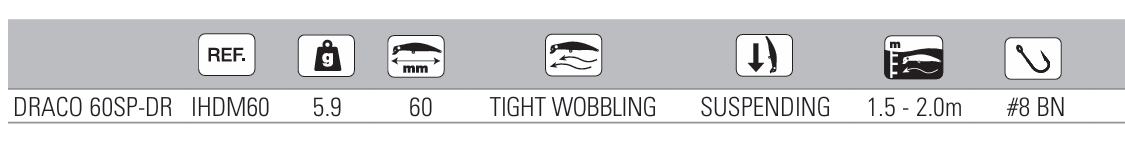 El Hart Draco 60SP-DR es un señuelo tipo minnow suspendido de 60 mm y 5.9 g, diseñado para pescadores que buscan precisión y rendimiento. Gracias a su sistema magnético de transferencia de peso, permite lances largos y estables, incluso en condiciones adversas.